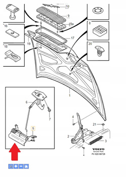 UCHWYT KLAMKA OTWIERANIA MASKI VOLVO S70 V70 C70 1997- OE 9170229