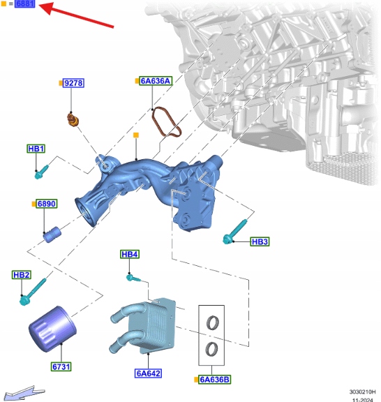 ADAPTER FILTRA OLEJU 5.0 V8 FORD MUSTANG 2015- OE 2319414 _ GR3E-6881-GD