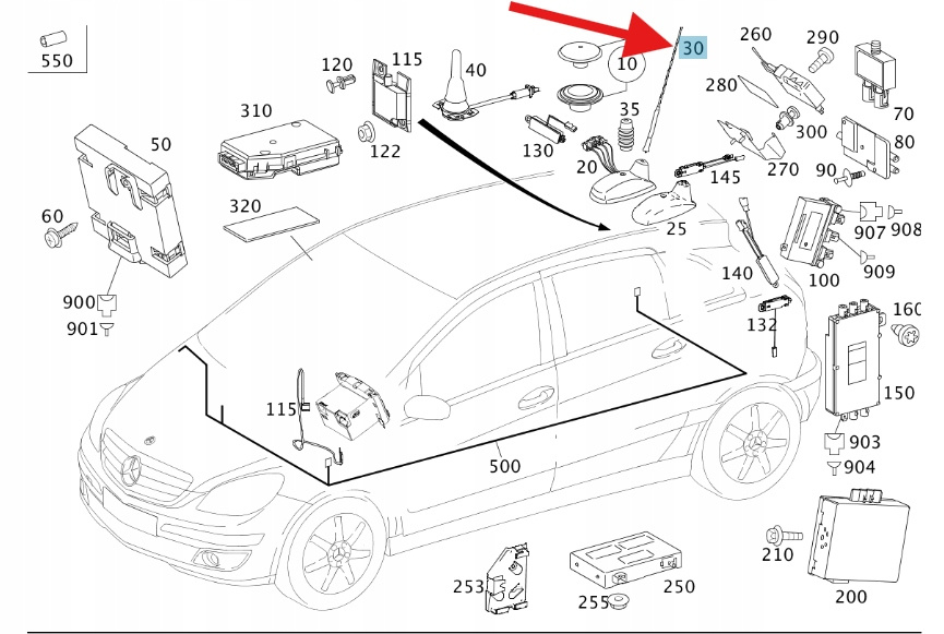 ANTENA DACHU MERCEDES A W169 B W245 OE A1698204175