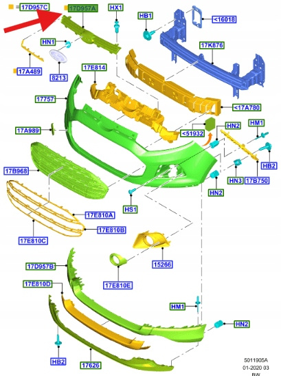 ATRAPA GRILL GÓRNY FORD ECOSPORT 2013- 2022 OE 1889861 _ EN15-17F003-AA5ZCT