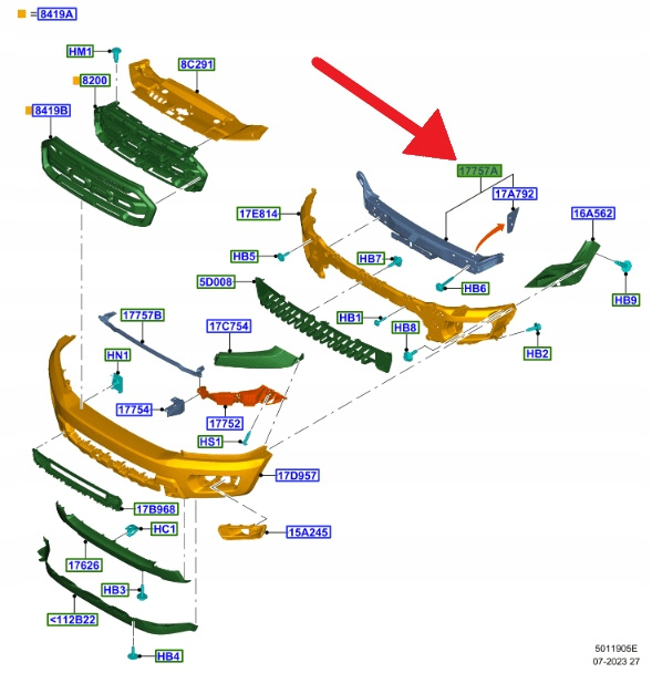 BELKA ZDERZAKA PRZÓD FORD RANGER MK5 2019- OE 2356401 _ JB3B-17F021-JH