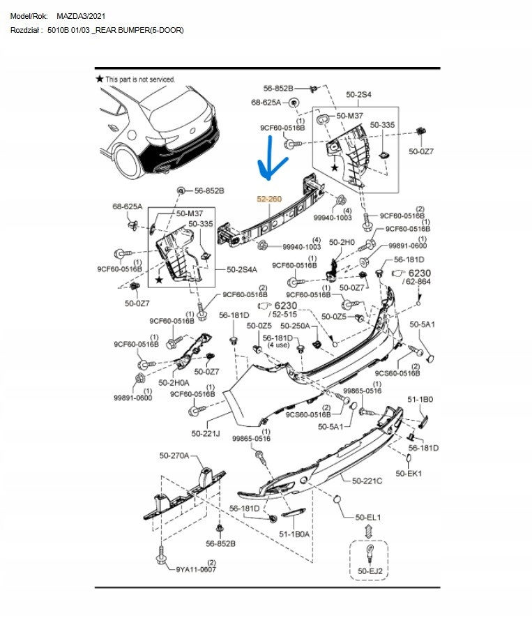 Belka zderzaka tylnego - Mazda 3 BP 2018-2023_BDMT50260