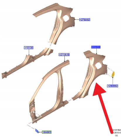 BŁOTNIK LEWY TYŁ FORD FOCUS HATCHBACK 2018- OE 2206883 _ JX7B-A27851-AA