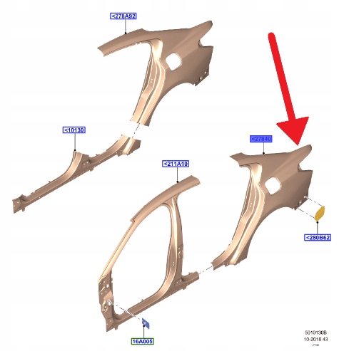 BŁOTNIK LEWY TYŁ FORD FOCUS SEDAN 2018- OE 2206887 _ JX7B-F27851-AA