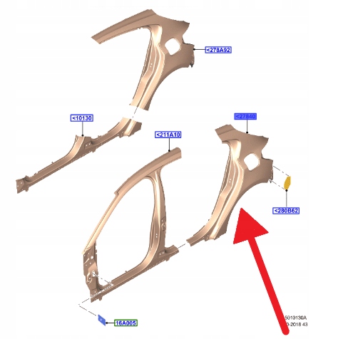 BŁOTNIK PRAWY TYŁ FORD FOCUS HATCHBACK 2018- OE 2206881 _ JX7B-A27850-AA