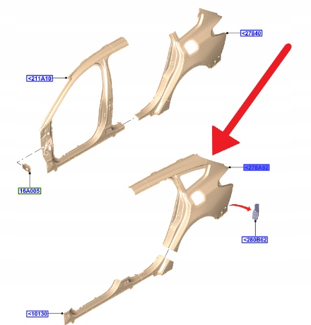 BŁOTNIK PRAWY TYŁ FORD FOCUS KOMBI 2018- OE 2206873 _ JX7B-N278A92-AA