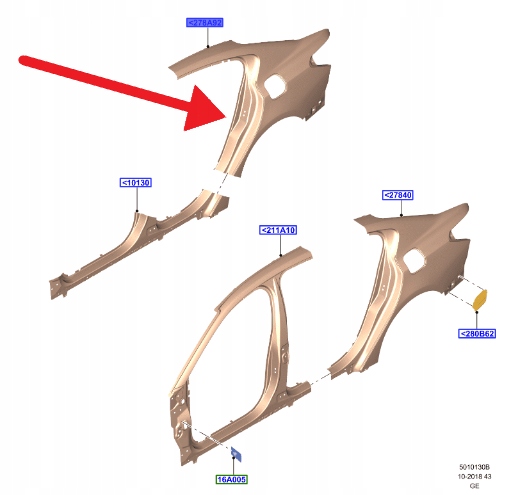 BŁOTNIK PRAWY TYŁ FORD FOCUS SEDAN 2018- OE 2206869 _ JX7B-F278A92-AA