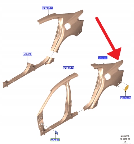 BŁOTNIK PRAWY TYŁ FORD FOCUS SEDAN 2018- OE 2206885 _ JX7B-F27850-AA