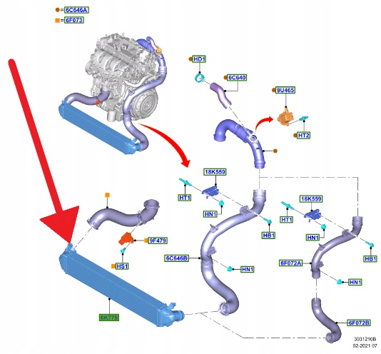 Chłodnica intercooler powietrza 2.3L EcoBoost