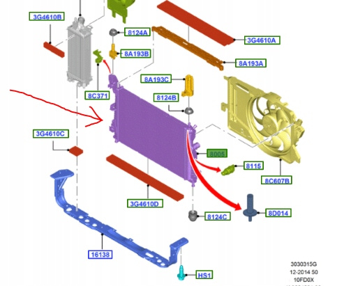 CHŁODNICA WODY 1.0L EB FORD FOCUS C-MAX 2014- 1830145 _ CV61-8005-VC
