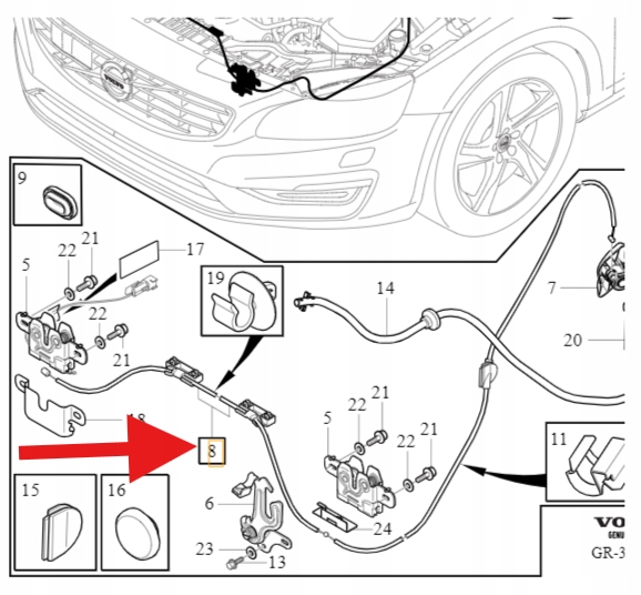 CIĘGNO LINKA OTWIERANIA MASKI VOLVO S60 V60 2011- OE 31385848