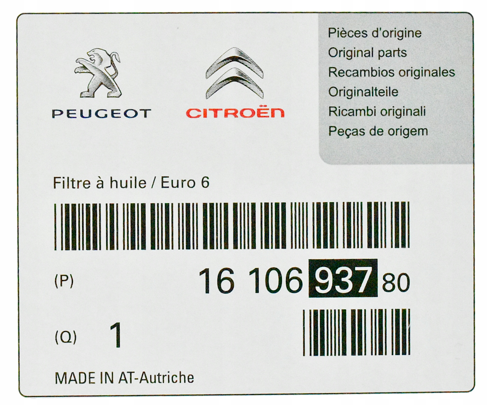 Citroen C3 C4 1.6 BLUEHDI FILTR OLEJU PSA OE 1610693780