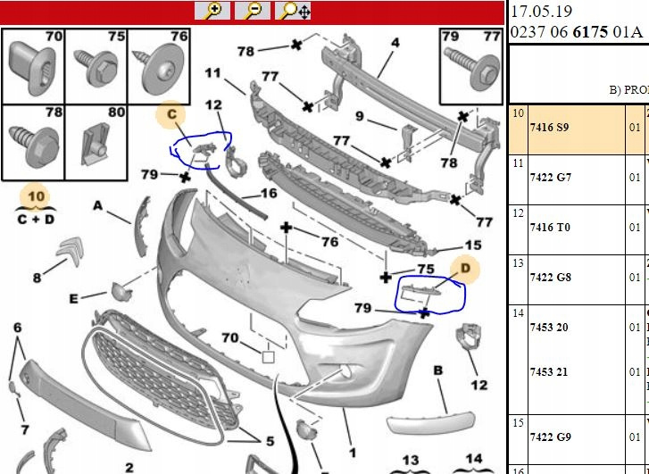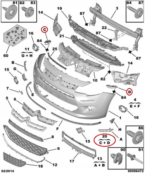 CITROEN C3 DS3 10- ŚLIZG MOCOWANIE ZDERZAKA PRZÓD OE 7416s9