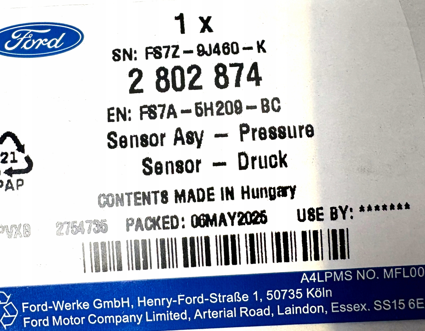 CZUJNIK DPF 2.0 TDCi FORD EDGE SMAX GALAXY 2015- OE 2802874 _ FS7A-5H209-BC