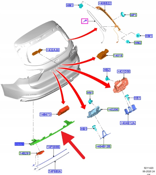 DEFLEKTOR ELEKTRYCZNY KLAPY FORD FOCUS 2018- OE 2343789 _ JX7B-17H760-UB