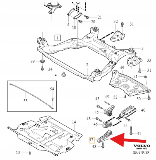 DOLNA ŁAPA PODUSZKA SKRZYNI BIEGÓW D5 VOLVO S60 V60 XC60 XC70 OE 31430975