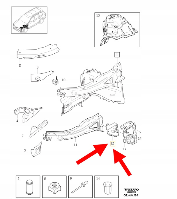 DOLNE WZMOCNIENIE PODŁUŻNICY PRAWY PRZÓD VOLVO XC90 2016- OEM/OE 31416354