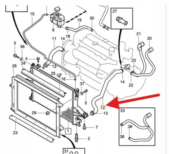 DOLNY LEWY WĄŻ PRZEWÓD CHŁODNICY BENZYNA VOLVO S80 1999- OE 30680916