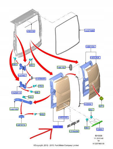 DRZWI TYLNE SKRZYDŁOWE LEWE TRANSIT CUSTOM 2012- 2404597 _ PBK21-V40011-BC