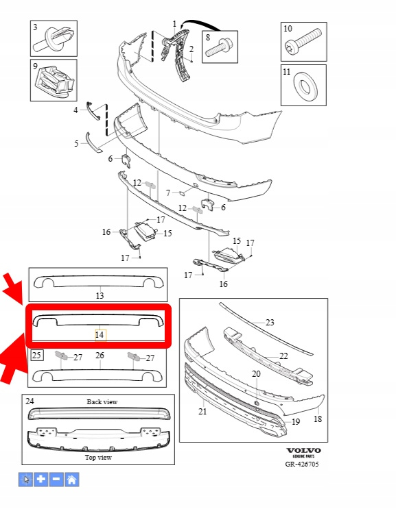 DYFUZOR DOKŁADKA ZDERZAKA TYŁ VOLVO XC90 2016-2021 OEM/OE 31477025