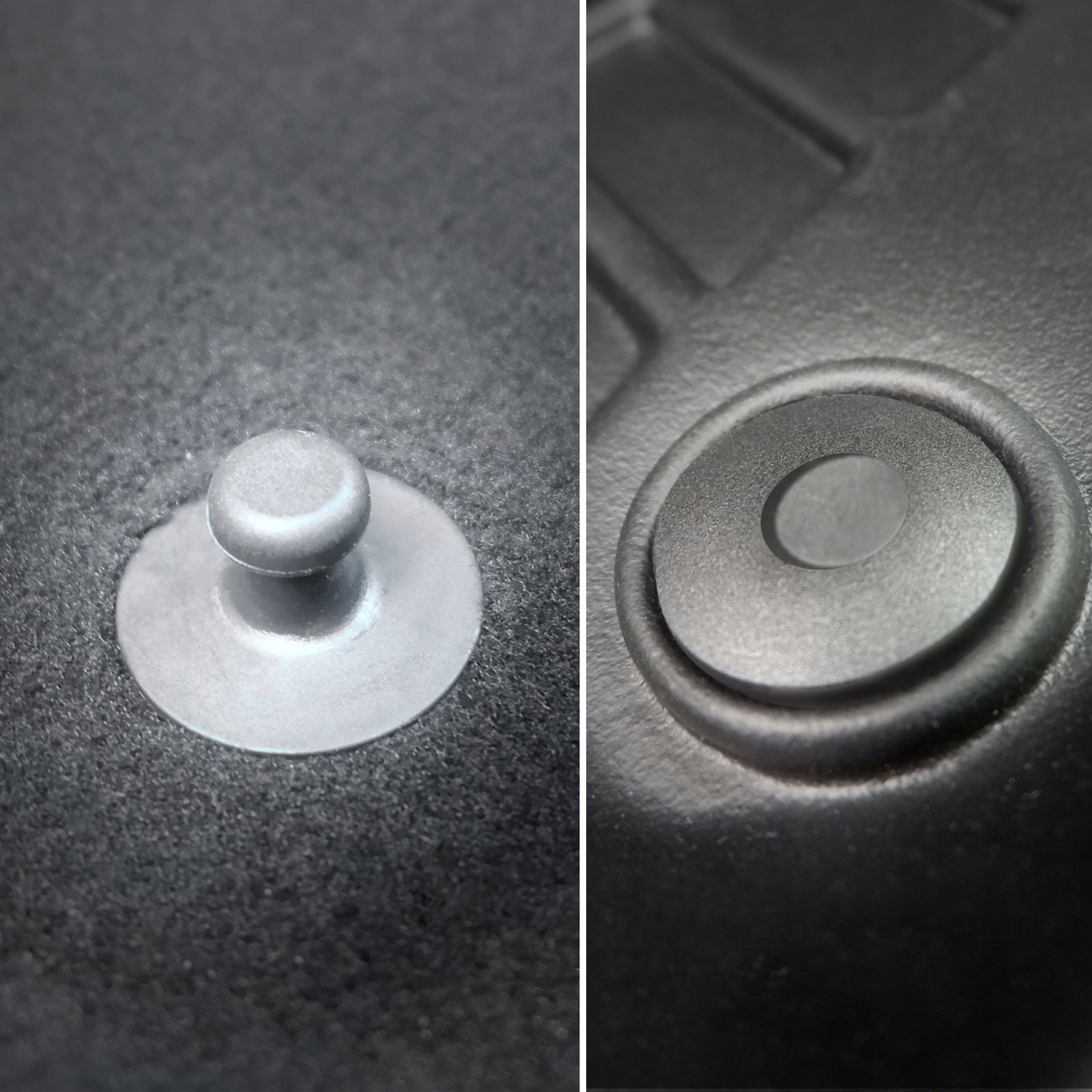 - Z logotypem specyficznym dla pojazdu oraz mocowaniami dodatkowo zmniejszającymi ryzyko poślizgnięcia.