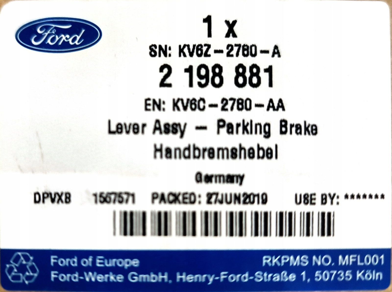 DŹWIGNIA HAMULCA RĘCZNEGO TRANSIT CONNECT 2013- 2198881 _ KV6C-2780-AA