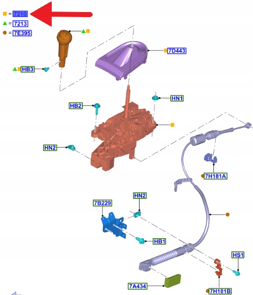 Dźwignia zmiany biegów skrzyni automatycznej 10R80, wykończenie Blue lightning