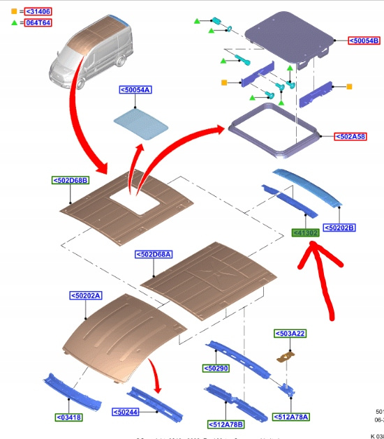 ELEMENT POSZYCIA DACHU TYLNY FORD TRANSIT 2014- 2516478 _ LK31-V41302-AA