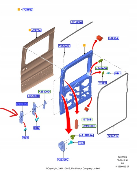 ELEMENT USTALAJĄCY DRZWI PRZESUWNE CUSTOM TRANSIT 2272638 _ BK21-V25300-CA