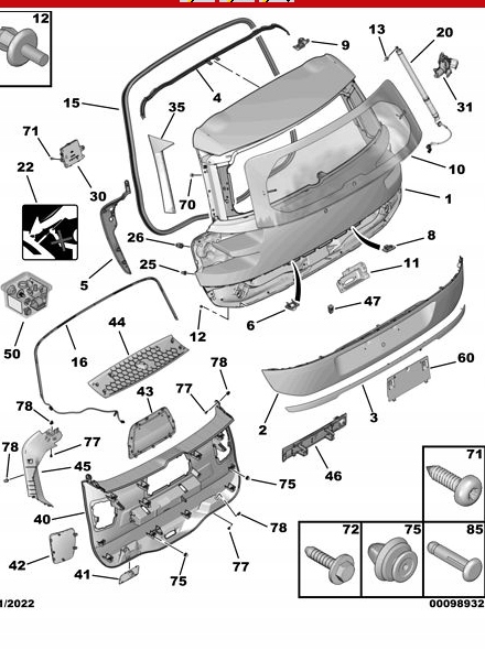 Elementy mocujące klapy tylnej Citroen OE 16 131 811 80