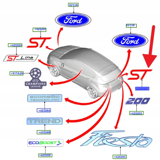 EMBLEMAT NAPIS ST TYLNY FORD FIESTA Mk7 2013- OE 1794608 _ C1BB-42528-AA