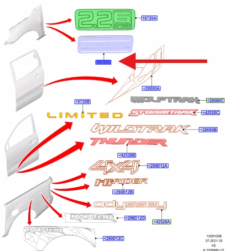 EMBLEMAT NAPISEM BŁOTNIK PRZÓD RANGER 2019- OE 2432493 _ JB3B-2616C144-AB