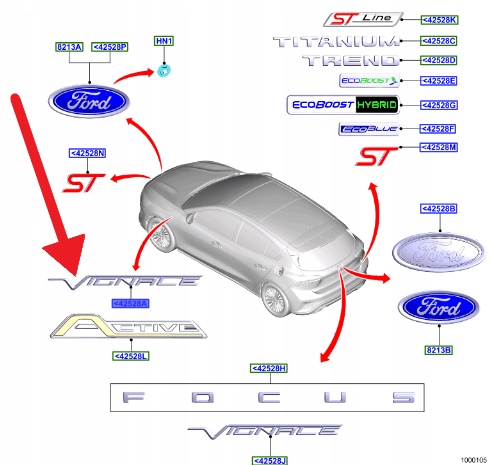 EMBLEMAT VIGNALE NA BŁOTNIK PRAWY FORD FOCUS 2018- 2218129 _ JX7B-16B114-AB