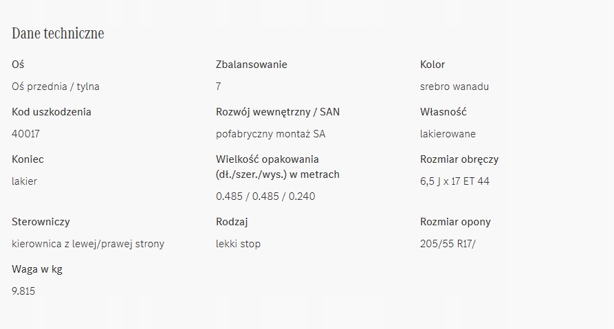 W jednym modelu pojazdu, mogą występować różne warianty danej części.