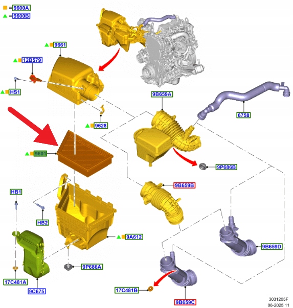 FILTR POWIETRZA 2.0 ECOBLUE 3.0 TDCi FORD RANGER 22- 2562972 _ MB3G-9601-BA