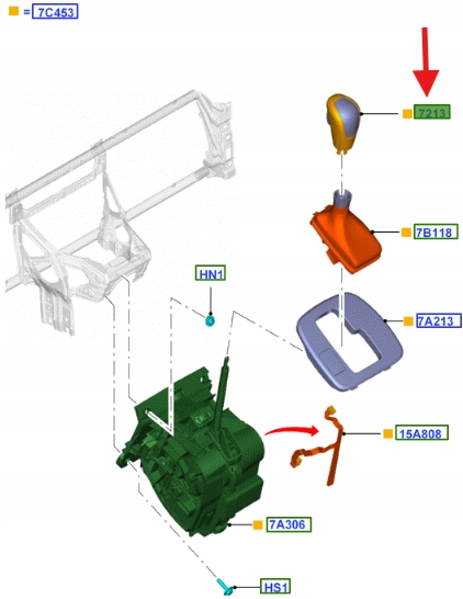 GAŁKA- DŹWIGNIA ZMIANY BIEGÓW FORD MONDEO 2010- 2033486 _ 7G91-7K327-AB