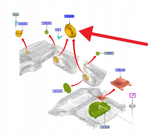 GŁOŚNIK DRZWI PRZÓD ECOSPORT FIESTA PUMA FOCUS 18- 2209746 _ JX7T-18808-FA