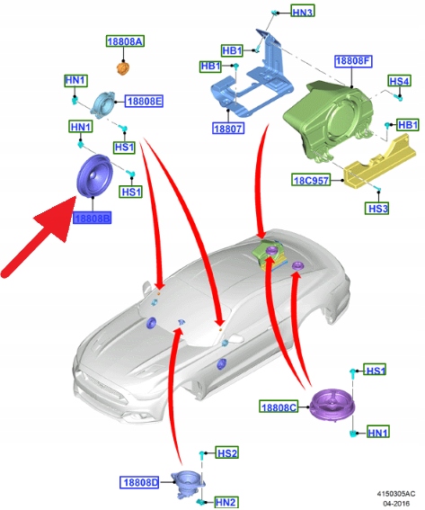 GŁOŚNIK DRZWI PRZÓD L P FORD MUSTANG 2018- OE 2311058 _ KR3T-18808-CC