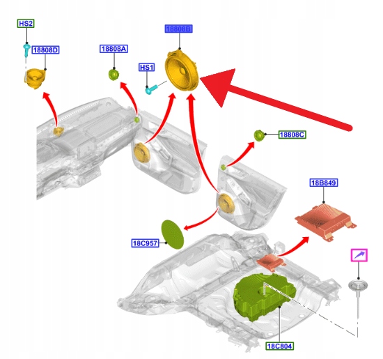 GŁOŚNIK DRZWI PRZÓD TYŁ FORD FOCUS Mk4 2018- OE 2201143 _ JX7T-18808-AB