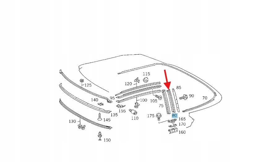 GÓRNA LEWA SZYNA USZCZELNIAJĄCA MERCEDES SL W129 OE A1297791321