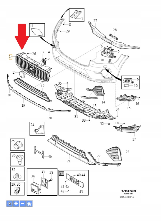 - GRILL ATRAPA ZDERZAKA PRZÓD VOLVO XC60 2022- R-Design OE 32133812