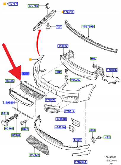 GRILL KRATKA CHŁODNICY FORD FOCUS 2005- 08 OE 1516621 _ 4M51-8200-CG