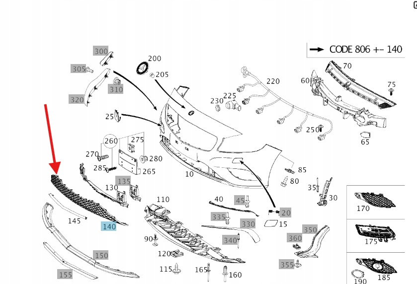 GRILL KRATKA ŚRODKOWA ZDERZAKA PRZÓD MERCEDES A klasa W176 OE A1768850922