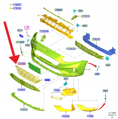 GRILL ZDERZAKA PRZÓD FORD FOCUS 2018- 2022 OE 2370110 _ JX7B-8200-TB