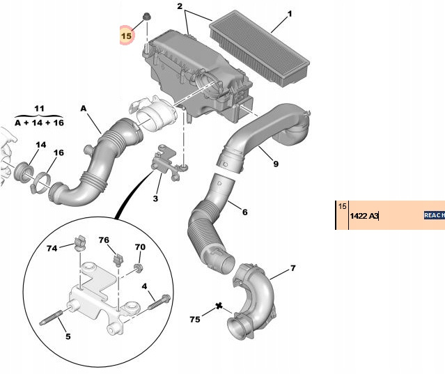GUMA MOCOWANIE FILTRA POWIETRZA C2 C3 C4 BERLINGO 206 207 307 308 OE 1422A3