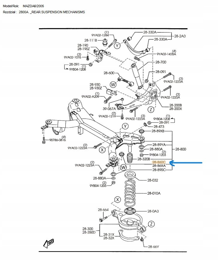 - Guma prawa belki poprzecznej - Mazda 6 GG GY_GJ6A28860A
