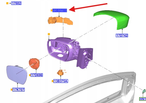 KIERUNKOWSKAZ LEWY LUSTERKA FORD EDGE SMAX GALAXY 2115840 _ EM2B-13B384-AB