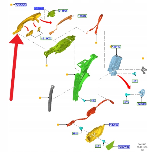 KLAMKA DRZWI TYŁ LEWA PRAWA FORD FOCUS 2018- OE 2342651 _ JX7B-22404-DAXWAA