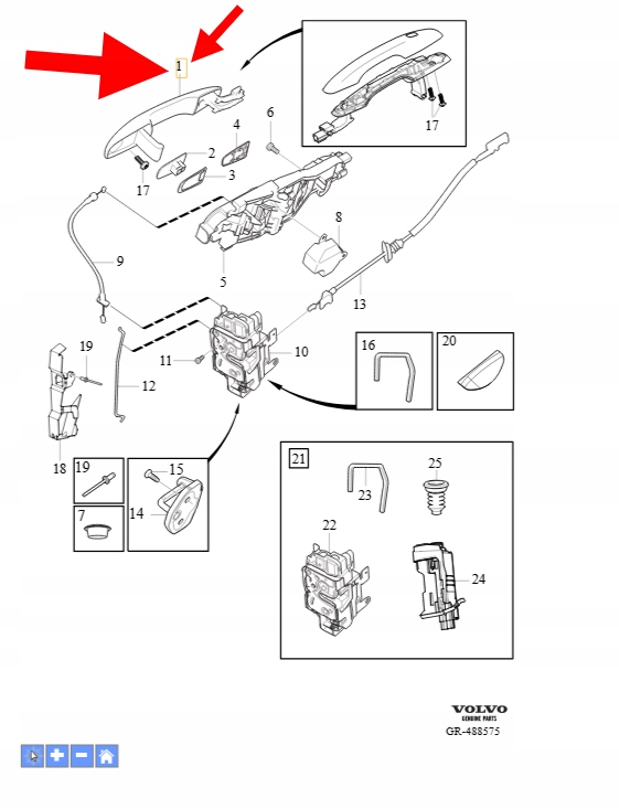 KLAMKA PRAWA DRZWI PRZÓD TYŁ LED VOLVO XC90 S90 V90 OEM/OE 40013438