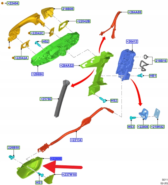 KLAMKA WEWNĘTRZNA DRZWI LEWY TYŁ FIESTA 2017- OE 2366511 _ H1BB-A22601-BG3